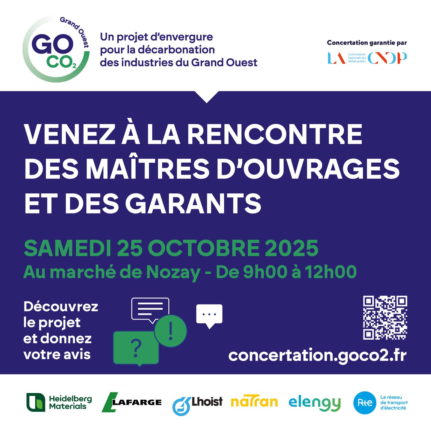 21 octobre 2025 Les maîtres d'ouvrage du projet GOCO2 seront présents le 25 octobre au marché de Nozayen compagnie des garants de la CNDP