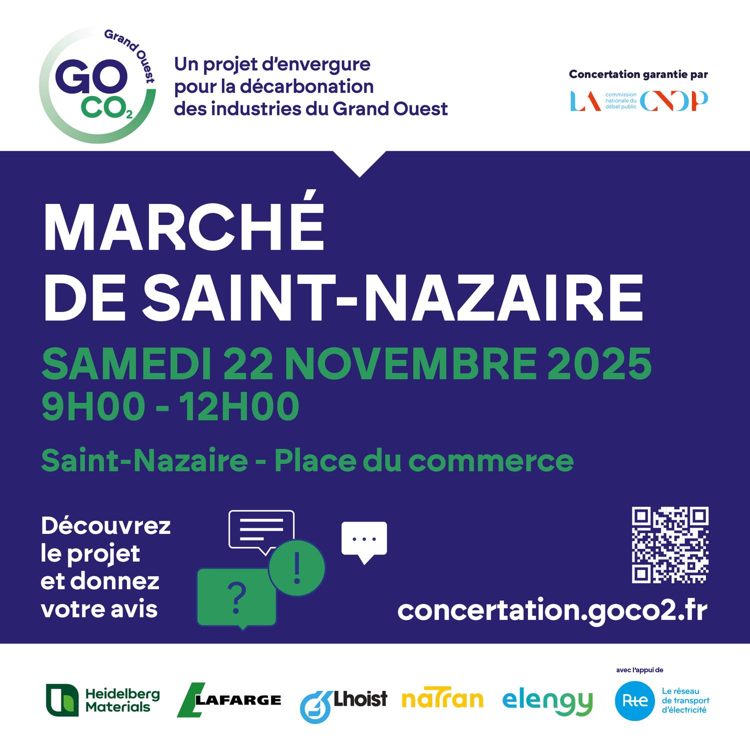 Les maîtres d'ouvrage du projet GOCO2 seront présents sur le marché de Saint-Nazaire, ce samedi 22 novembre à partir de 9h00.